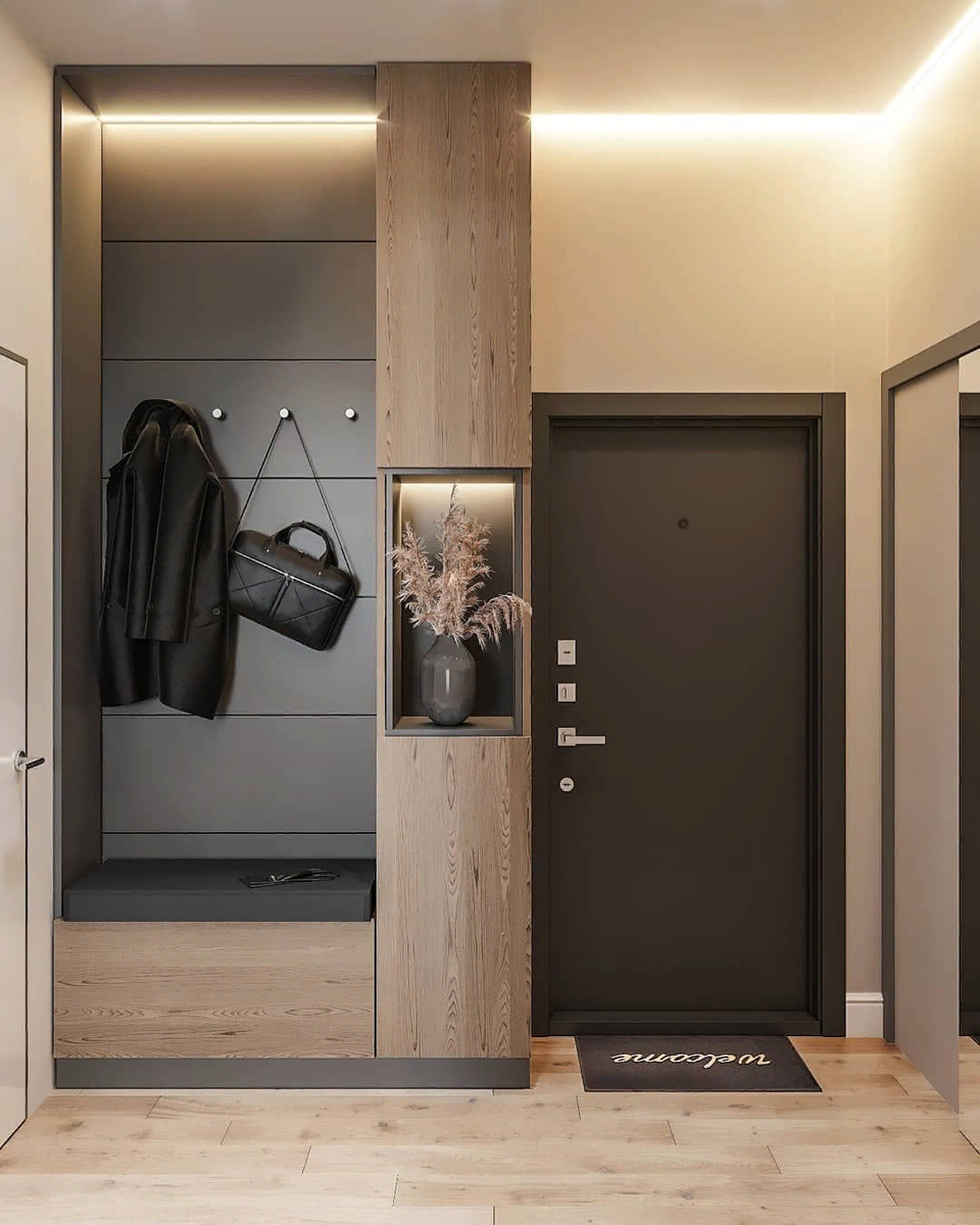 Вы начинаете свой день,выйдя из прихожей,а вечером возвращаетесь сюда же.Именно от организации и обустройства этого пространства во многом зависит,каким будет ваше настроение с утра и в течении всего дня.К тому же прихожая создает первое впечатление о хозяевах у всех входящих в ваш дом. В прихожей,даже если она большого размера,не должно быть посторонних предметов и ненужной мебели.Функцмональность и практичность-главные критерии выбора.Предметы обстановки должны не только вмещать достаточно большое количество вещей,но и быть достаточно компактным.Традиционный комплект мебели для прихожей- это шкаф,зеркало,пуфик или банкетка,полки.Отдельные вешалки для ключей,сумок,зонтов сделают прихожую более удобной и индивидуальной. Существует несколько несложных приемов того,как сделать,чтобы помещение выглядело просторнее.В небольшой прихожей лучше избегать темных цветов и мелкого рисунка обоев,чтобы она не выглядела совсем уж крохотной.А крупный рисунок обоев,спокойные,пастельные цвета и зеркала