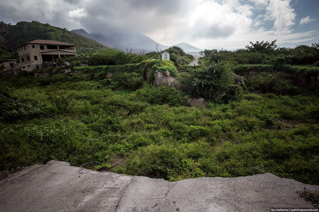 Монтсеррат был ничем не примечательным островным государством, заморской территорией Великобритании, пока в 1995 году не случилась трагедия. 25 июня 1995 началось катастрофическое извержение вулкана Суфриер-Хиллс. Большинство жителей страны эвакуировались, столицу засыпало пеплом и полностью уничтожило лавой. Прошло больше 25 лет, но и сейчас большая часть острова закрыта для посещения, дороги разрушены, сотни домов стоят брошенными. В стране до сих пор нет столицы, зато есть одна дорога, 2 заправки, 4 ресторана и целых 6 церквей. Монтсеррат представляет интерес для любителей погулять по заброшенным городам. Здесь мародеры не успели разграбить дома, которые жители оставили 25 лет назад. На вешалках до сих пор висит дорогая одежда, в холодильниках лежат продукты, а на журнальных столиках можно найти газеты, датированные июнем 1995 года. Жуткое, конечно, зрелище. 01. Летают на Монтсеррат вот такие маленькие самолетики. 02. Вот, собственно, Монтсеррат. Скалистый, грубый, без пляжей. 03. С