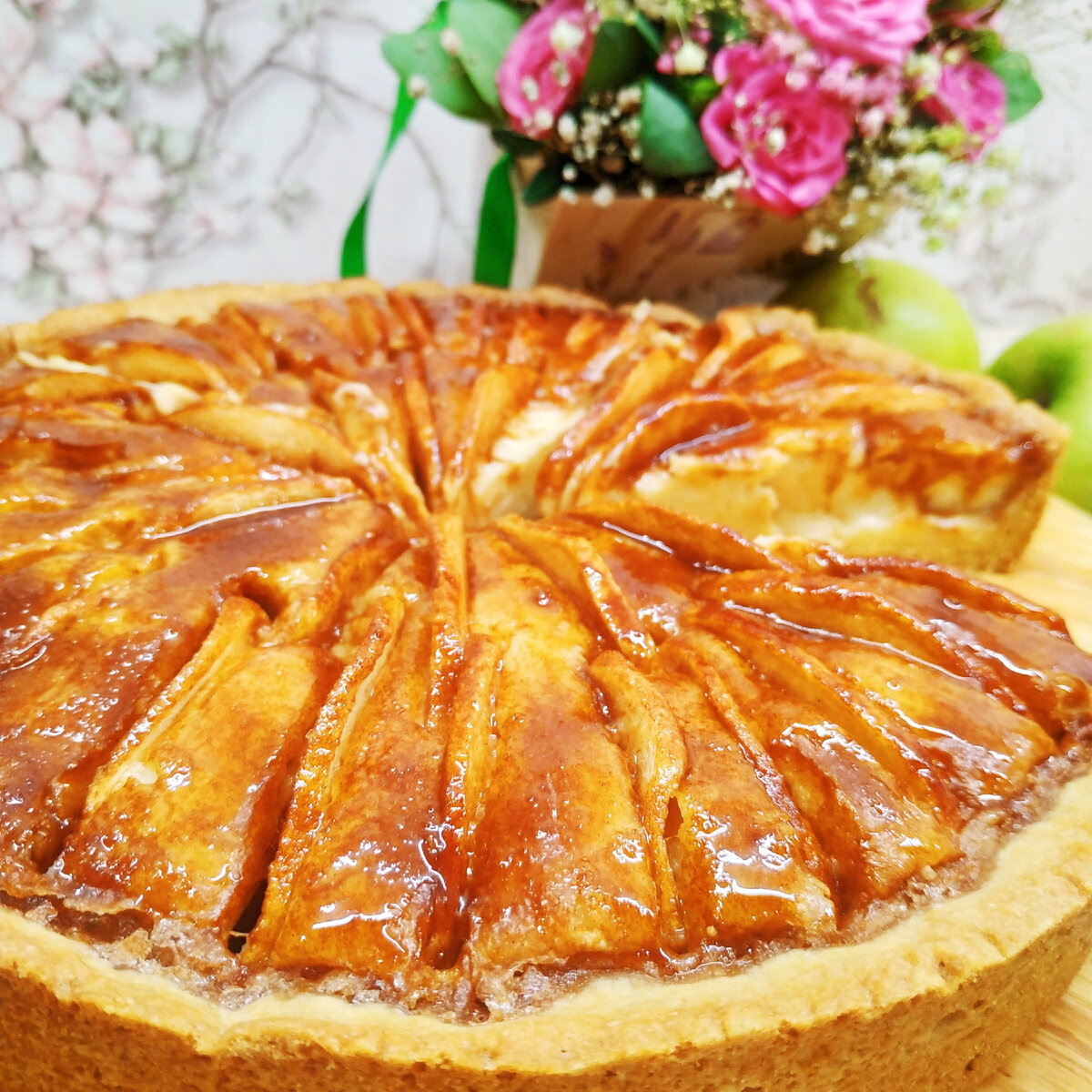 Ингредиенты: 🥧Для теста 🍎 Сливочное масло (комнатной температуры) - 150 г 🍎 Яйцо - 1 шт. 🍎 Сахар - 80 г 🍎 Мука - 250 г 🍎 Разрыхлитель - 1 ч.л. 🍎 Цедра 1 лимона 🍎 Соль - щепотка 🥧 Для начинки 🍎 Маскарпоне - 325 г 🍎 Сахар - 100 г 🍎 Яйца - 2 шт. 🍎 Мука - 100 г 🍎 Ванильный сахар - 1 ст. л. 🍎 Цедра 1 лимона (по желанию) 🍎 Сахар - 75 г 🍎 Корица - 0,5 ч.л. 🥧Для декора 🍎 Абрикосовый джем - 3 ст.л. 🍎 Вода - 3 ст.л. Приготовление: 1️⃣ Поместить все ингредиенты для теста в ёмкость, замесить тесто, обернуть его пленкой и убрать в холодильник не менее чем на полчаса. 2️⃣ Дно формы (∅24 см) застелить бумагой для выпечки, выложить тесто, сформировав бортики, наколоть вилкой и снова убрать в холодильник. 3️⃣ Маскарпоне перемешать с сахаром и ванильным сахаром, по одному добавить яйца, в самом конце добавить муку, все тщательно перемешать. 4️⃣ Вылить начинку в подготовленную форму. Яблоки (лучше не твердых сортов) очистить, порезать на тонкие ломтики, вставить яблочные дольки в начи