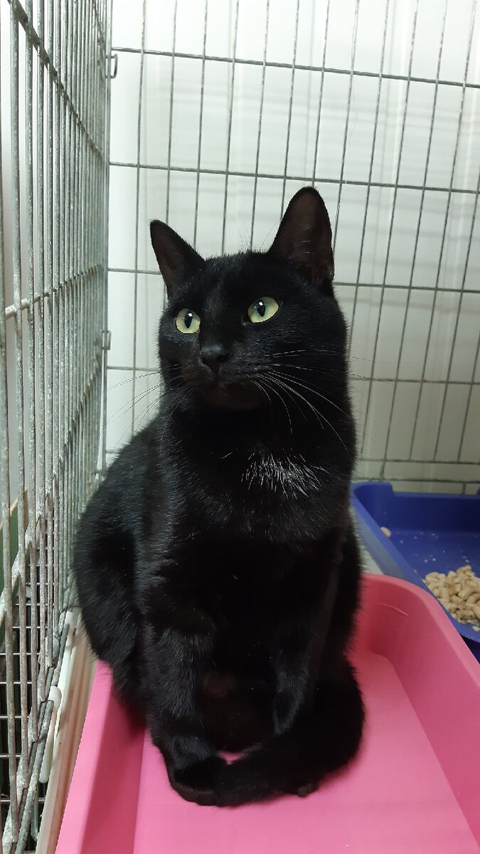 Прошло почти пол года, как эта кошка в приюте. Спустя пол года она не вжимается в пол при виде человека и даже вполне спокойно сидит. Да, руками мы ее не трогаем, но глазками любоваться можно.