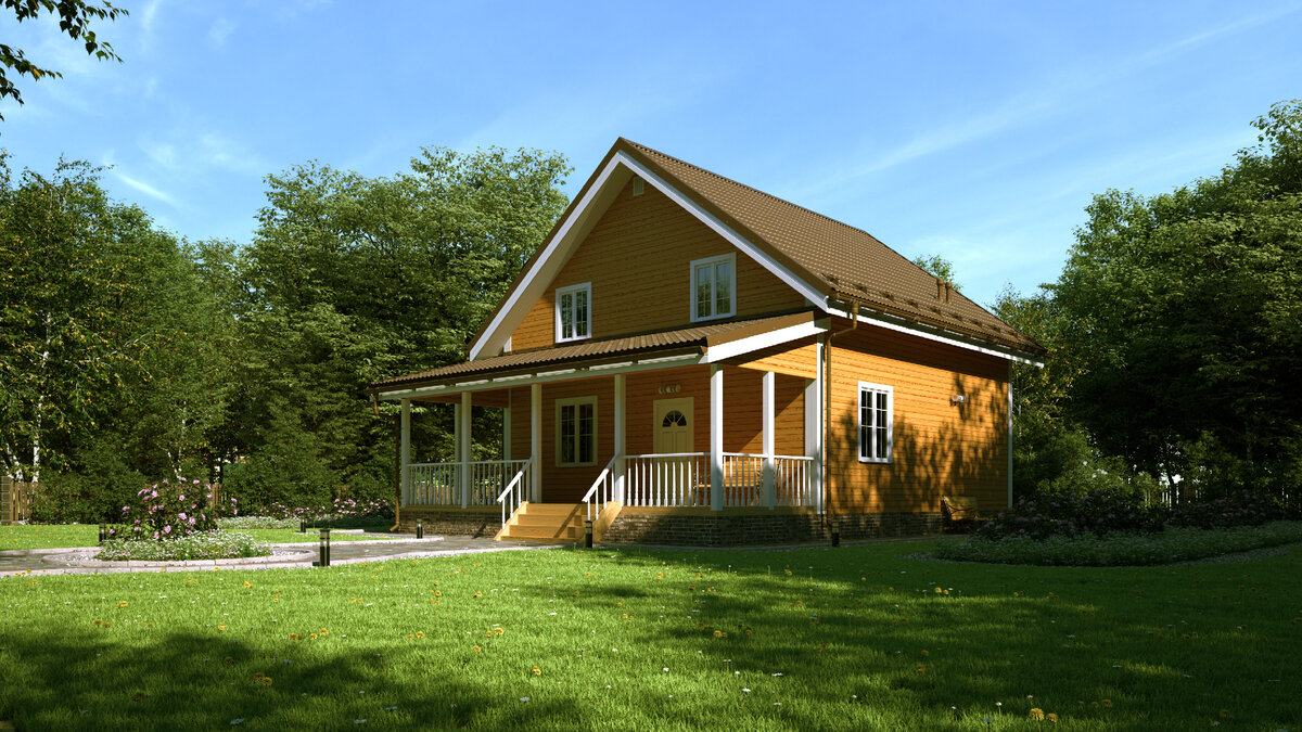 Бавария – еще один любимый нашими покупателями дом. Это уютный, просторный дом с четырьмя жилыми комнатами, двумя санузлами, кухня-гостиной и обширной верандой – самой большой среди остальных проектов, не считая Праги, веранда которой по размеру равна Баварии. Но обо всём по порядку. Итак, начнём осмотр дома с участка на 8 соток, который вы можете украсить, как хотите. Засадите участок цветами, выкопайте пруд, обвесьте веранду виноградом и сделайте из неё настоящий предмет искусства – дайте своему внутреннему гению волю. К слову о веранде, это одно из главных преимуществ проекта «Бавария». Веранда Баварии внушительна -- 27 м.кв дадут вам возможность не только устраивать семейные ужины на свежем воздухе или принимать гостей, но и устроить тут полноценную зону отдыха с телевизором и пуфиками. Теперь предлагаю зайти в дом. Первое, что нас встречает – кухня размером в 16 м.кв и холл в 18 м.кв. Просторная гостиная в 18 кв.м,, расположенная рядом с кухней, позволит вам устроить обстановку т