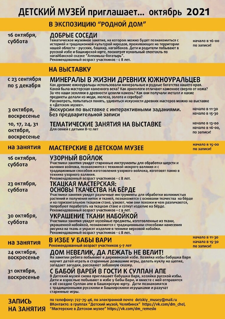 Детский музей музей приглашает семьи с детьми на музейные занятия и экскурсии в ОКТЯБРЕ !
