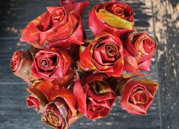 Каждую осень многочисленные яркие листья деревьях падают на землю, создавая благодатную почву для новых побегов и даря сердцам людей грусть о прошедших теплых днях. Но мы придумали, как сделать цветок из кленовых листьев, который может быть от оранжево-желтого до ярко-красного. Изготовление такого букета из натурального материала не займет много времени и будет храниться до следующей осени, а то и дольше. Чтобы сделать цветы из кленовых листьев, необходимо собрать подходящий материал. Для этого отправляйтесь в ближайший парк или аллею, где растет это красивое дерево. Листья следует выбирать максимально ярких цветов и желательно разной формы. Не подходят уже засохшие экземпляры. Для великолепного цветка с кленовыми листьями вам понадобится крошечная копия любого цвета, две-три больших красных, оранжевых или желтых, а чашелистик сделан из максимально натурального зеленого материала. Чтобы цветок из листьев клена не потрескался и получился ярким, процесс создания не стоит откладывать.