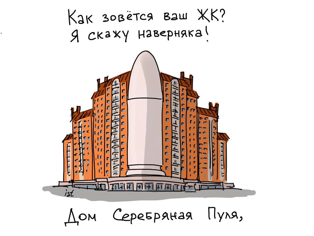 Петербургский художник Илья Тихомиров тоже по-своему увидел несколько городских жилых комплексов. Свой взгляд он выразил, как и подобает художнику, в иллюстрациях, к которым придумал забавные стихи. Давайте посмотрим, на какие дома обратил внимание Илья Тихомиров.