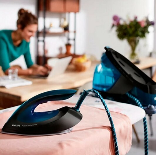 Philips STH3020 / 10 Красиво смотрится и компактно складывается, очень удобен в использовании - хорошо сбалансирован и не слишком тяжелый. Обратной стороной (хотя иногда и плюсом) является очень маленький резервуар для воды - это удобно, потому что оборудование не тяжелое, но зато эту воду приходится часто доливать. Эта техника удобно умещается в ящике или в чемодан. Если цена для кого-то не является преградой, то эту модель действительно стоит рассмотреть. Параметры: паровой удар: 20 г / мин; емкость бака: 0,12 л; скорость нагрева: 30 сек (очень быстро); длина кабеля: 2 м; вес: 0,65 кг. Philips ComfortTouch GC557 / 30 Если бы у меня был вместительный шкаф, то такой технике точно нашлось бы место. Потому что отпариватель, который постоянно стоит сам за себя и дополнительно имеет собственную вертикально расположенную гладильную доску, - это настоящее счастье. Большой резервуар для воды очень практичен, так как его не нужно часто наполнять. Наконечник отпаривателя сконструир