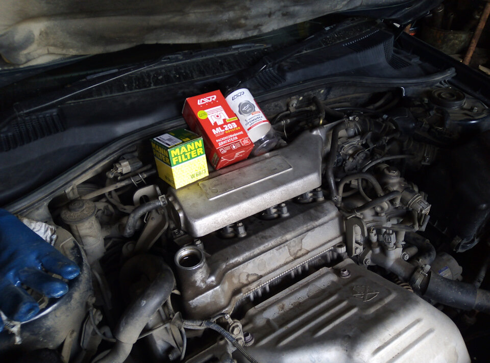 Имеется автомобиль Toyota Corona Premio с пробегом 206000 км. Подошло время поменять масло. Перед этим решил залить раскоксвоки, т.к. Двигатель масло кушает. (Заранее извиняюсь что нет дополнительных фото, было некогда фотографировать.) Снял впускной коллектор чтоб добраться до свечей, выкрутил свечи и залил раскоксовку, простоял двигатель где то час +-, слил раскоксовку, была чернючая (что то да отмыла). Вкрутил свечи, собрал коллектор, подцепил все датчики. Залил промывку запустил двигатель на 5 мин. Сливаю масло, тоже чёрное. Поменял фильтр, залил свежее масло. Idemitsu 5w-30. Посмотрим как будет вести себя мотор сейчас. А так уже мысленно готовлюсь к контрактому движку.