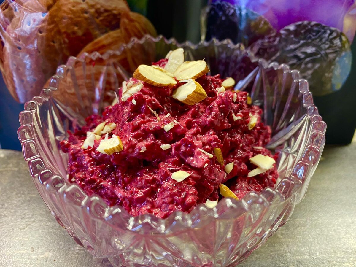Вкус салата заиграл новыми красками, стал богаче и интереснее. У миндаля особенный, узнаваемый фруктово-пряный вкус, идеально сочетается со свеклой.