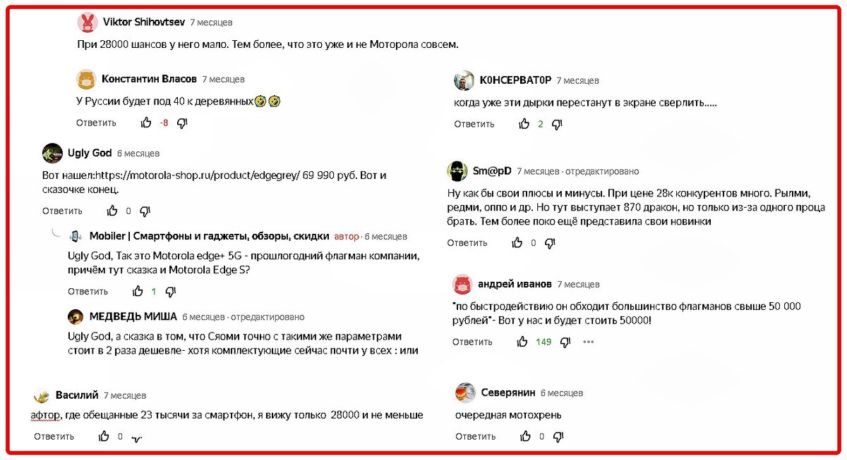 Вы наверное тоже заметили необычный заголовок и вступительное изображение. Всегда думал, куда поместить негативные комментарии читателей? Хотел было в рамочку поставить перед собой, но решил сделать проще и разместил их на фото (надеюсь, мелкие надписи читаемы). Так полгода назад я написал статью про анонс смартфона Motorola Edge S, который вышел в Китае по начальной цене 23000 рублей — как раз через месяц его по такой цене продавали на AliExpress. Но "самые умные" ждать снижения цен не стали, зашли на китайскую площадку и начали "вонять" в комментариях, что цена просто выдумана автором. Кто частенько покупает на Али, тот знает, что и там перекупы желают сверху 3-5 тысячи заработать на перепродаже. Друзья, заметил тенденцию, что многие перестали ставить лайки - вы что переключились на короткие видео? Обязательно поставьте и поддержите молодого автора! Как понимаете, смартфон Motorola Edge S достаточно неплох за свои деньги. Работает он на производительном чипсете Snapdragon 870 (7 nm),
