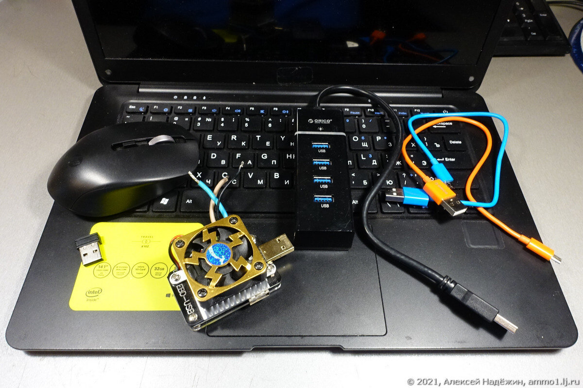 Позавчера у меня был неудачный день. Утро началось с того, что сгорел ноутбук и почти всё, что было подключено к USB-портам. Судя по всему, во время подготовки к тестированию 12-вольтовых свинцовых аккумуляторов для ИБП каким-то образом 12 вольт с аккумулятора попало на питание USB. Или я как-то чего-то коснулся (но сам не понял как и чего) или пробило USB-тестер EBD-USB+ и вход как-то соединился с питанием интерфейса управления. Я только услышал тихий щелчок и экран ноутбука погас. Ноутбук KREZ N1403S (https://ammo1.livejournal.com/989377.html) прослужил мне три года. Не знаю, есть ли какие-то шансы его восстановить, если на пятивольтовое питание USB попали 12 вольт с практически неограниченным током (ограничение - только провода и дорожки платы, а аккумулятор может и 200 ампер выдать не напрягаясь). Не знаю, как у этого ноутбука сделана схема питания, но может там и процессор сгорел. Сейчас при долгом нажатии кнопки питания на полсекунды вспыхивает индикатор питания и всё. Сгорел USB