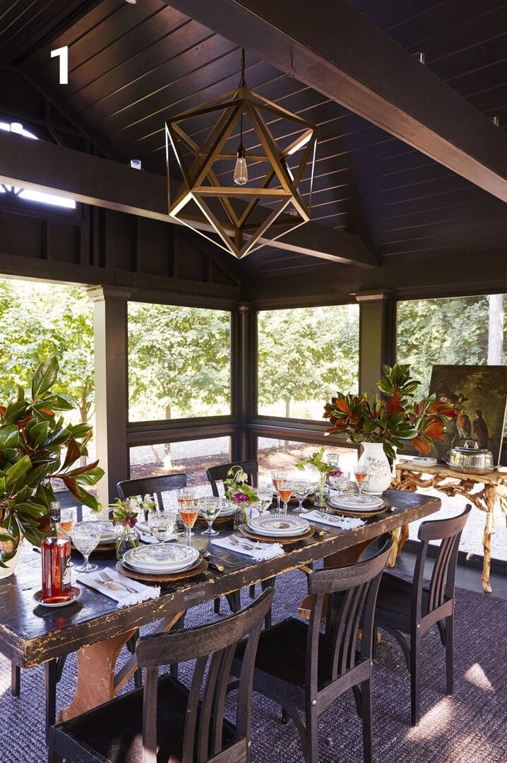 Федеральный дом 1830-х годов в долине Гудзона включает в себя экранированный шикарный, полуоткрытый садовый павильон, где можно насладиться трапезой среди пышного двора. Старинный садовый столик Finch окружен обеденными стульями Restoration Hardware, поддерживающими скромную, но причудливую атмосферу.