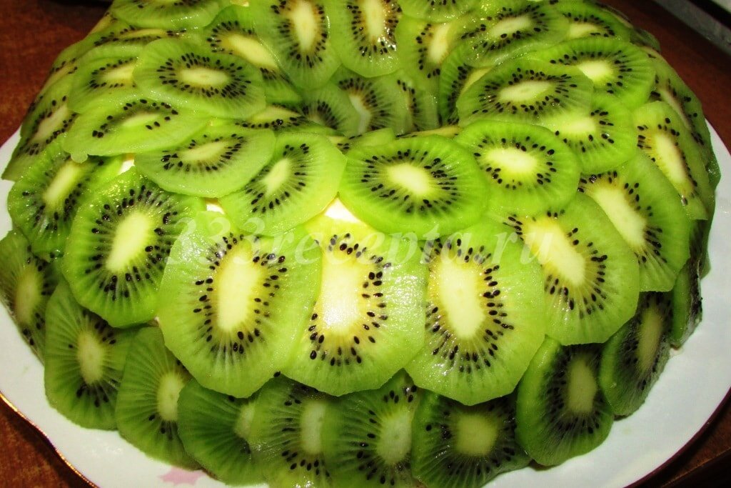 2.Выложите нарезанную курицу на плоское блюдо в виде круга, временно поместив стакан в середину тарелки. Смажьте первый слой салата майонезом. 3.На вареную курицу выложите второй слой салата - нарезанные вареные яйца, смажьте слой майонезом. 4.Следующий слой выложите вареной морковью и смажьте майонезом. 5.Киви нарезать кружочками и украсить салат. Наслаждайтесь! Приятного аппетита! Спасибо за внимание!