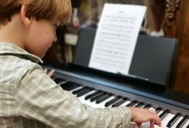 И так было до его семилетия. Ребёнок вырос - и теперь проявляет интерес к исполнению более сложной, настоящей музыки. По своей инициативе, например, он за пару недель разобрал "Маленькую прелюдию" Баха, До мажор. И сам играет ее целыми днями, я только прошу сделать потише инструмент, чтобы не мешать соседям, так как музыка у нас звучит практически весь день.