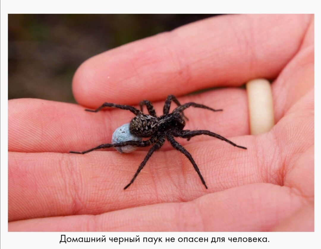 Черные домашние пауки, обитающие в средних широтах России, практически не опасны для человека и его питомцев. Они не выделяют яд или другие вещества, которые могут нанести вред здоровью или вызвать реакцию организма. Большие черные пауки опасны только на территории Сочи и других городов с теплым климатом. В Сибири и на Урале они не представляют опасности для людей. Их яд может стать смертельным только для мелких насекомых. Людям выпрыскиваемый инсектицид не вреден. Если все же человек не знает, опасны ли домашние пауки, то можно перестраховаться, обработав место укуса перекисью водорода или спиртом. Кроме того, для обработки подходят спиртовые настойки. Разновидности членистоногих с описанием Все пауки – хищники. Они питаются насекомыми и проживают по всей планете, кроме Антарктиды. Немногие из всех разновидностей членистоногих способны обитать в жилище человека. Определить виды домашних пауков, поселившихся в комнате, можно по отличительным признакам особи и ее паутине. Представители