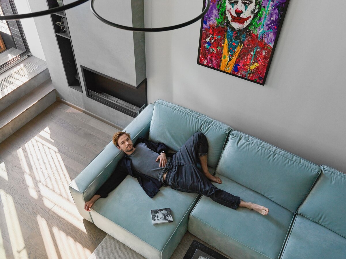 Звезда «Полицейского с Рублевки» Александр Петров недавно показал свою новую квартиру в Москве. В апартаментах с очень высоким потолком удалось не только выделить второй уровень для спален, но и организовать террасу под открытым небом. И все это в центре столицы. Возможно, ваша квартира имеет более скромные параметры, но это не означает, что ремонт, который сделаете себе вы, должен быть скучным и банальным. Мы продолжаем разбирать интерьеры звезд, чтобы понять, как повторить их дорогие ремонты. Потому что дело не в бюджете, а в насмотренности, в хорошем вкусе и желании жить удобно и красиво. Дизайн двухуровневой квартиры в Москве. С сауной и террасой Итак, у Александра Петрова уже был дом в пригороде, где он и проживает постоянно. Но для удобства он приобрел сравнительно небольшую квартиру в Москве — небольшую по площади, но зато с потолком, позволяющим возвести второй этаж, за счет чего площадь сильно увеличилась. На первом этаже расположилась большая просторная кухня-гостиная: тут и