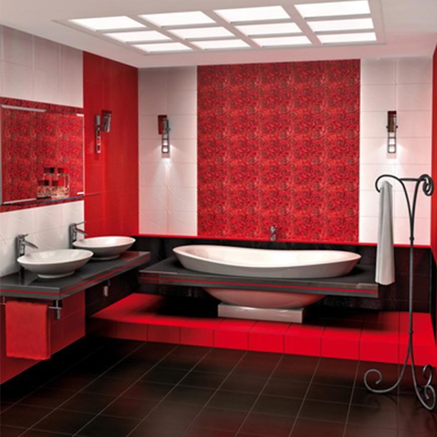 Современные производители предоставляют возможность выбрать самые разные дизайны керамической плитки, под любой замысел, вкус и настроение. Среди такого объема предложений можно легко запутаться, поэтому у заказчиков возникают вопросы: какую плитку выбрать и как не сделать ванную слишком «ядовитой», если выбор пал на более смелые, яркие варианты? Когда имеет место Чтобы сделать ванную комнату эффектной, но при этом не «перегнуть палку», следует соблюдать ряд принципов в сочетании цвета плитки и окружающего пространства: 1. Визуальное расширение комнаты с помощью цвета. Первая цель, которая стоит перед обладателями небольших ванных – оставить достаточно «воздуха». В таких случаях подойдут как раз яркие варианты – голубой и бирюзовые цвета в сочетании с серым отлично справятся с задачей; 2. Выделение отдельных зон. Если имеет место совмещенный санузел, с помощью использования контрастных цветов можно «разбить» комнату на секции. В зоне ванны можно отдать предпочтение яркой плитке с узор