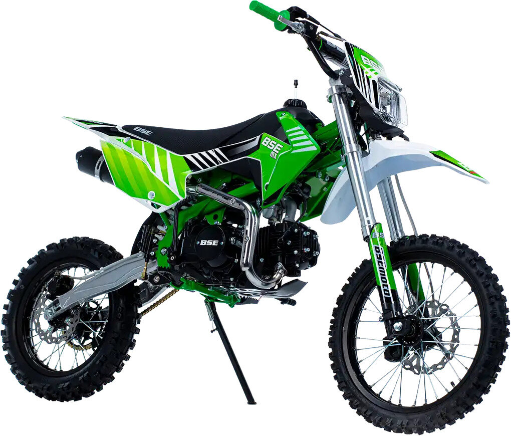 Сейчас питбайки набирают большую популярность среди подростков. Однако на нём нельзя ездить по дорогам общего пользования! Питбайк BSE MX 125 имеет двигатель Zonsgshen ZS154FMI-2 обьёмом в 125 кубов. Который выдаёт 10 лошадиных сил, что впринципе нормально для подростка. Двигатель защищён от перегрева, так как имеет воздушную систему охлаждения. Рама здесь высокопрочная, стальная, усиленная линками. Передняя подвеска: телескопическая вилка перевёрнуто типа, 790 мм, нерегулируемая Задняя подвеска имеет моноармотизатор с регулировкой. Тормозная система здесь гидравлическая HSK RACING размеры: 220/190 Питбайк имеет колёса размером 17/14. Обьём бензобака всего лишь 3,5Л что немного. Весит питбайк 74 килограмма Я мечтаю о этом питбайке)