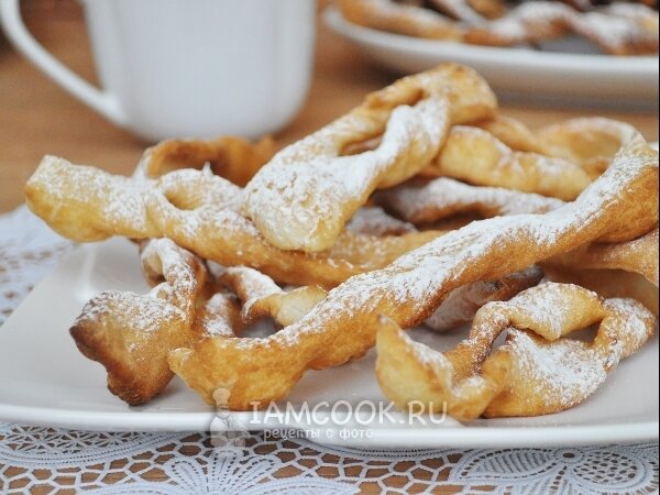 Жареное тесто в сахарной пудре, которое хрустит и тает во рту, и всё это одновременно. Именно такие воспоминания у меня сохранились об этом лакомстве. Жарила его моя бабушка огромными тазами (да-да, именно тазами), а потом раздавала всем, кто к ней заходил в гости. А я, естественно, любила ходить к бабушке в гости😅😜 Да, знаю, это МЕГАкалорийно, но так вкусно😋 Так что иногда побаловать себя такой вкусняшкой можно и нужно😉😀 Рецепт бабушкиного хвороста, к сожалению, я уже не могу узнать. Но точно помню секретный ингредиент - водка. При этом приготовить вкусно хворост можно по-разному. Поэтому предлагаю посмотреть 5 вариантов приготовления хвороста и решить, какой из них вам больше приглянулся😀 1. Печенье «Хворост» 📌 Ингредиенты: ⚡️Калорийность: 474 кКал 🕒Время приготовления: 40 мин. Посмотреть пошаговый рецепт с фото >> 2. Тонкий хрустящий хворост 📌 Ингредиенты: ⚡️Калорийность: 234 кКал 🕒Время приготовления: 50 мин. Посмотреть пошаговый рецепт с фото >> 3. Хворост на желтках 📌