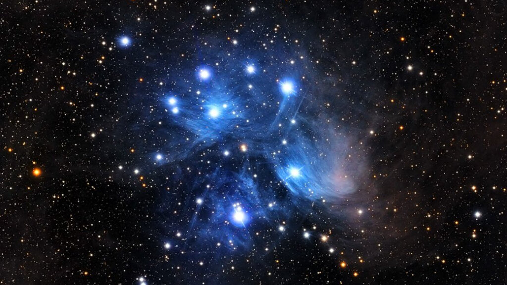 Многие из вас, смотря в ночное небо, замечали рой ярких звездочек - словно группа светлячков расположилась где-то там наверху. Скопление и наиболее яркие звезды, названные в честь Плеяд - прекрасных нимф греческой мифологии, можно разглядеть с Земли даже невооруженным глазом. Самая яркая из них - Альцион, почти в 8 раз больше Солнца, в 3 раза тяжелее и в 2000 раз ярче. Точное количество звезд в скоплении неизвестно, так как многие звезды слишком тусклые чтобы их можно было рассмотреть. На данный момент открыто около 1200 звезд, но по оценкам ученых, в реальности их может быть как минимум в двое больше. Скопление Плеяд можно считать довольно молодым - оно моложе нашего Солнца почти в 50 раз, а расстояние до него невозможно даже представить - около 135 парсек. К слову, 1 парсек равен 31 триллиону километров - такое расстояние кажется чем-то фантастическим и