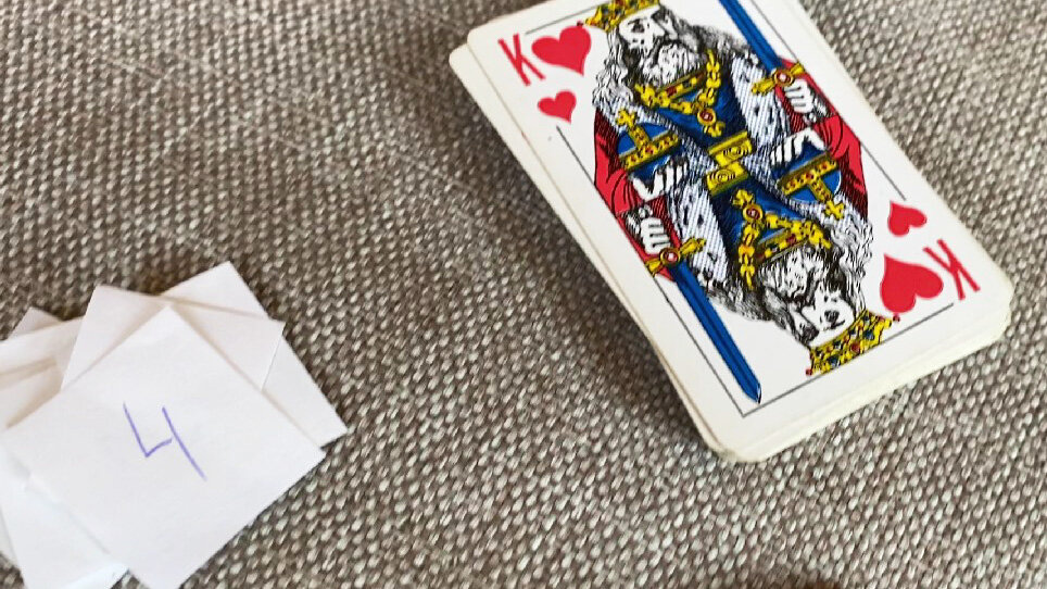 Потребуется всего лишь колода обычных игральных карт, одинаковые бумажки, на которых написаны цифры от 1 до 10, список заданий, который будет далее.