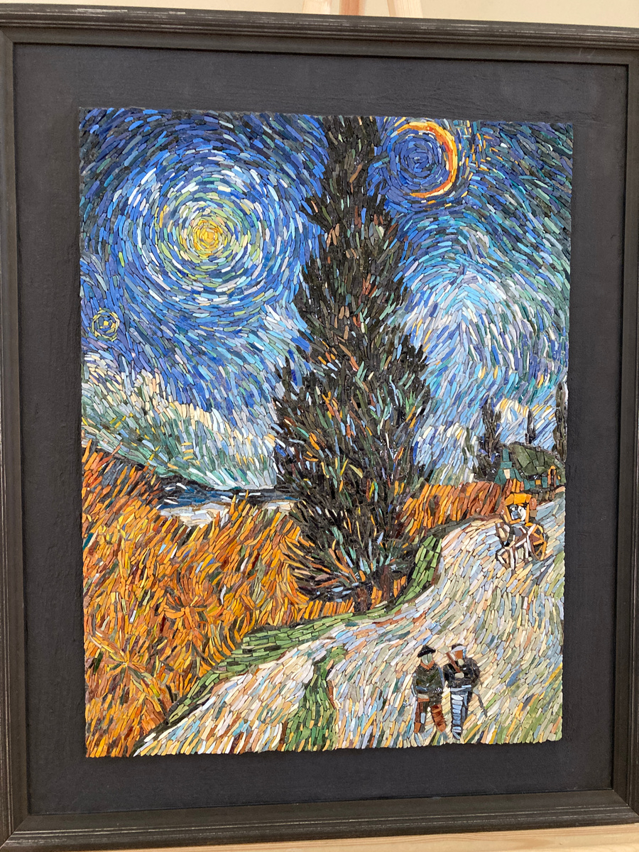 Замечательная выставка закончила свою работу в библиотеке Маяковского на Невском, 20. В одном из красивейших залов нашего города сосем незаметно пролетела выставка Школы мозаики Гранат. Только прошла выставка о Петре I, как здесь быстро развернули новую, но вот и она уже закончилась. Работы действительно завораживают. Объемные, плоские, из мелких деталей и с добавлением металла и дерева.... А какой шикарный столик, просто поражает своей натуральностью! Увы, не нашли книгу отзывов. Пишу данную статью, чтобы поделиться своим впечатлением. Я вам покажу несколько работ, которые меня потрясли: Ну и немного об интерьере: данный зал всегда отлично подходил и для выставок, и для концертов, и для лекций. Надо только следить за анонсами мероприятий и не полениться и сходить в библиотеку, тем более, что вход бесплатный и чаще всего на 1 этаже проходит ещё какая-нибудь выставка (в эти дни "Бестиарий Лема глазами Мруза", интересная книжная графика к произведениям Станислава Лема в годовщину его