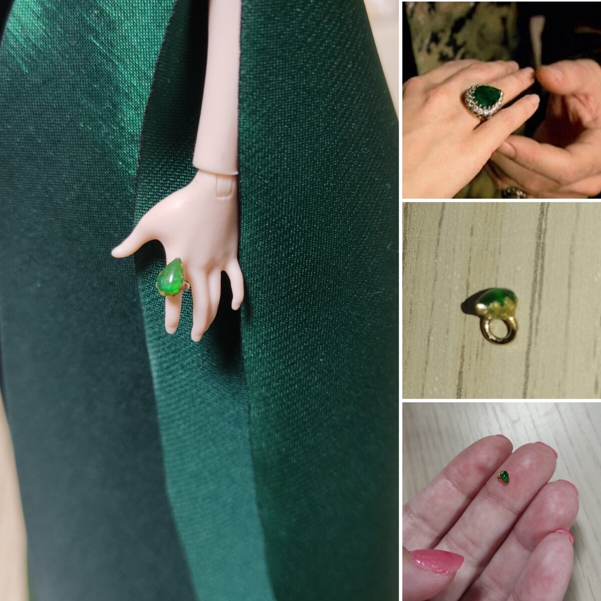 Всем привет! Меня зовут Александра, и я увлекаюсь преображением (ООАКом) кукол Monster High и Ever After High. Продолжаю работать над образом Хюррем Султан. Платье и корона уже сделаны. Сегодня на очереди аксессуары, обувь и оставшиеся детали наряда. Первое и самое важное украшению Хюррем - это её знаменитое кольцо. В середине изумруд в форме капли, по краям бриллианты. Конечно, в таком мелком формате ни о каких бриллиантах речи не идёт, но изумруд сделала. Правда, без огранки, округлый, но для такого мелкого формата, думаю, это простительно. Делала его из акригеля для ногтей. Вообще, как оказалось, ногтевые материалы - это очень классная вещь. Высыхает в лампе за пару минут, опиливается пилкой до нужной, формы, легко красится акрилом. Красота! Чтобы камень казался прозрачным, красила его витражной краской. Колечко к камню приклеивала базой для маникюра - держится отлично. Серьги. Тут на помощь опять пришли ногтевые материалы, а именно украшения для маникюра. Камни были прозра