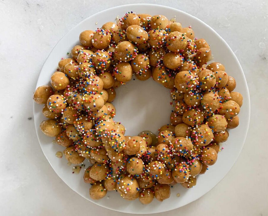 Все мы любим торт "муравьиная горка", или в простонародии "муравейник", но не все знают, что рецепт берет свое начало из американского десерта "Струффоли"! Струффоли - классический итальянско-американский десерт, приготовленный во время Рождества. Крошечные шарики из теста обжариваются до золотисто-коричневого цвета, заливаются липко-сладким медовым сиропом, а затем украшаются радужной посыпкой. Вы найдете эти сверкающие холмики на любом Американском столе в рождественскую пору. Советы по жарке струффоли Обжарка во фритюре - вот что придает шарикам штруффоли восхитительный аромат и легкую текстуру, но в варианте Русской или Итальянской кухне чаще используют духовку. Для гарантированного успеха нужно помнить о нескольких вещах. Подготовьте противень, застеленный бумажным полотенцем, и переложите на него приготовленные шарики. А затем нужно дождаться пока шарики станут золотисто коричневыми. С помощью шумовки или металлического паука перемешайте шарики и аккуратно поднимите готовые шарик
