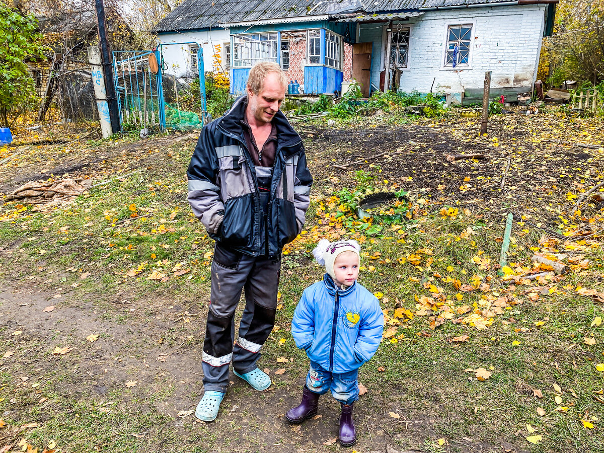 Приехали в гости к многодетной семье в глухую деревню. Их домашнее хозяйство. В деревне сделали новую дорогу