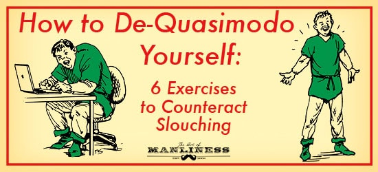Ниже я расскажу о шести различных упражнениях, которые вы можете выполнять, чтобы противодействовать пагубным последствиям сутулости. Они сами мне помогли де-Квазимодо - может быть, они помогут и вам. Эти упражнения, конечно же, следует выполнять в сочетании с согласованными усилиями по поддержанию хорошей осанки в течение дня во время работы .