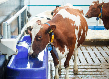 Рассказываем, какая норма потребления воды у коров и как ее обеспечить на ферме. Что является важным питательным элементом для коровы? Сразу хочется ответить, что это корм. Но нет, важнее будет вода – источник сил и энергии, без которого не может ни один живой организм. Так сколько же нужно пить корове? Объем воды, необходимый для обеспечения нормальной жизнедеятельности коровы, зависит от нескольких факторов: возраст, отеление и доение. Также на количество воды влияет температура внешней среды. Чем теплее, тем больше жидкости требуется животному. В таблице приведены примерные данные, сколько корова должна потреблять в зависимости от своего состояния. Как организовать режим поения? Коровы обычно пьют несколько раз в день, количество подходов к поилке может варьироваться от 5 до 25, но в среднем – 10 раз. Это зависит от потребностей животного и от иерархии, сложившейся в стаде. Из-за этих факторов необходимо также обеспечить место для поения. На каждые 20 животных в стаде должны приходи