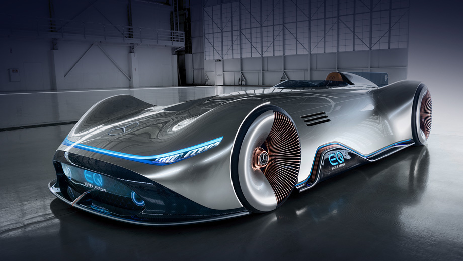 В Пеббл-Бич в Калифорнии Mercedes-Benz представит шоу-кар Vision EQ Silver Arrow в рамках Monterey Car Week, которая проходит с 18 по 26 августа 2018 года. Это мероприятие привлекает ценителей автомобилей и коллекционеров со всего мира. Одноместный автомобиль также является данью уважения успешному рекордсмену W 125 1937 года. Окраска в серебристый цвет alubeam напоминает исторические "Серебряные стрелы", которые по весовым соображениям не имели белого слоя краски. В интерьере преобладают традиционные высококачественные материалы, такие как натуральная кожа, полированный алюминий и массив ореха. Цифровой кокпит, между тем, указывает прямо в будущее: он включает в себя изогнутый панорамный экран с обратной проекцией, а также сенсорный экран, интегрированный в рулевое колесо.
