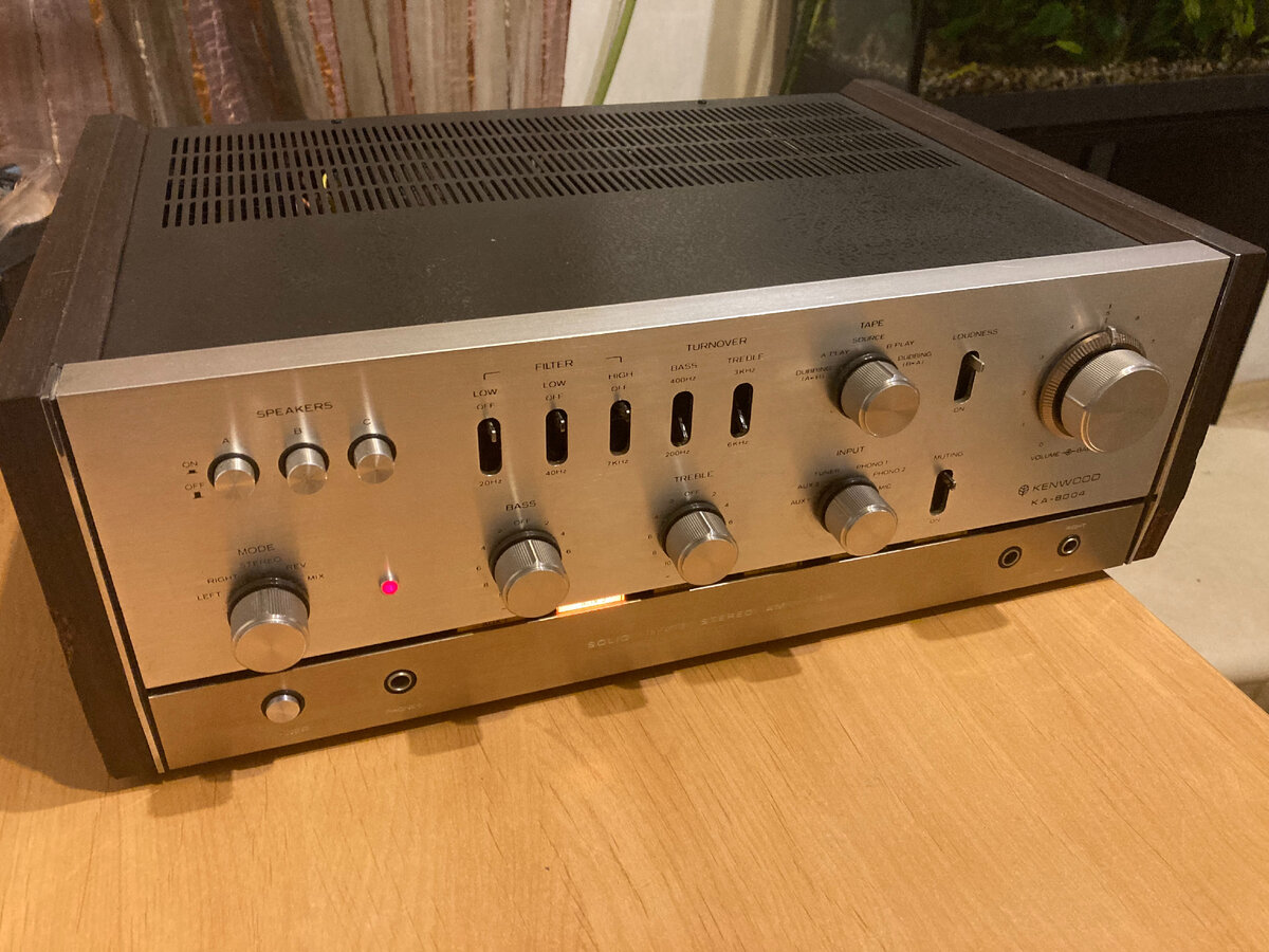 Kenwood KA-8004 - полный усилитель, верхний в линейке, выпускался с 1973 года. Стоил в Японии 93000 Йен, что по имеющейся у меня таблице курса валют, составляло сумму около 1000 Долларов США. Для 1973 года - внушительная сумма.