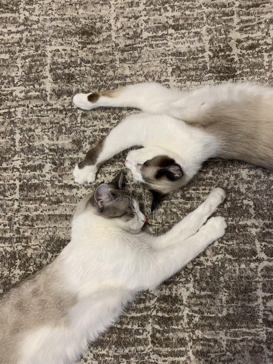 Как все начиналось. Перед тем как взять Лясю, мы подготовили квартиру для жизни 2х хвостиков. Купили отдельные лоток, когтеточку и лежанку. И вот настах день X, нам привезли нашу красотку. С первых же минут эта дама нисколько не растерялась и начала исследовать квартиру, Масик смотрел на это с недоумением и возмущением. Его реакция понятна - кто-то вторгся на его территорию. Первые дни прошли тяжело, мы не выходили из дома одновременно, так как старшенький задирал девчонку, но и она не терялась и давала сдачи. В общем, мы были немного в панике, так как боялись, что так теперь будет всегда. Но тут важно не давать волю эмоциям и довериться советам знающих людей. У нас таким человеком была девушка из Ляськиного приюта. И вот что мы делали, что начать спокойную жизнь: Итог: через одну-две недели морды уже спали вместе и стали настоящими неразлучниками. Для тех же, у кого позволяют квартирные условия, рекомендуется сначала поселить новое животное в отдельную комнату. Таким образом коты начн