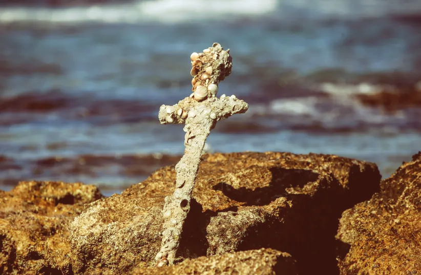 Вот и дайвер из Атлита Шломи Кацин решил попытать счастья, и ему повезло. На дне среди остатков древней керамики он увидел предмет, густо обросший ракушками, по форме напоминающий меч.