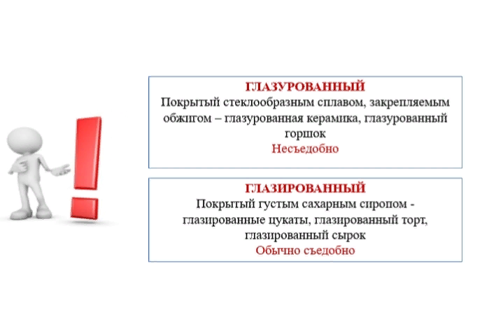 И никогда не перепутаем: то, что можно съесть – глазированное, а что нельзя – глазурованное.