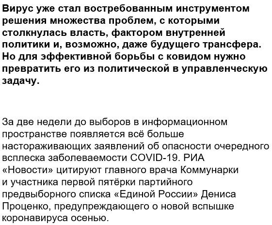 Деполитизируй это. Если бы коронавируса не было, его следовало бы придумать для современной России