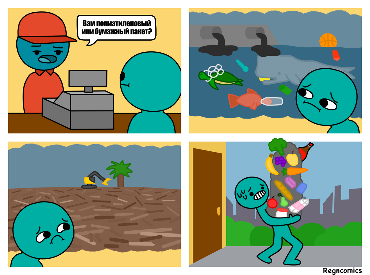 Привет, дорогой друг! Сегодня я хочу поднять одну важную тему, а именно поговорить об экологии. Но планирую сделать это в своем стиле — с помощью подборки забавных комиксов от разных авторов, которые посмотрели на эту проблему через призму юмора. Вообще, над вопросом улучшения экологической ситуации начали задумываться уже давно, но реальные действия все еще мало кто воплощает. Поскольку #экология напрямую влияет на наше будущее, то многие художники в своем творчестве так или иначе затронули этот вопрос. Я собрал в сегодняшнем выпуске самые забавные #комиксы на эту тему. Конечно, основная доля загрязнений приходится на промышленные предприятия, повлиять на которые обычному человеку очень сложно. Но каждому под силу выполнять небольшие действия по минимизации урона. Правда, как показывает комикс от Comics by Regn, придется столкнуться с некоторыми неудобствами. Есть районы, где экологическая обстановка сильно неблагоприятная, но есть также и места, где #природа осталась практически нетр