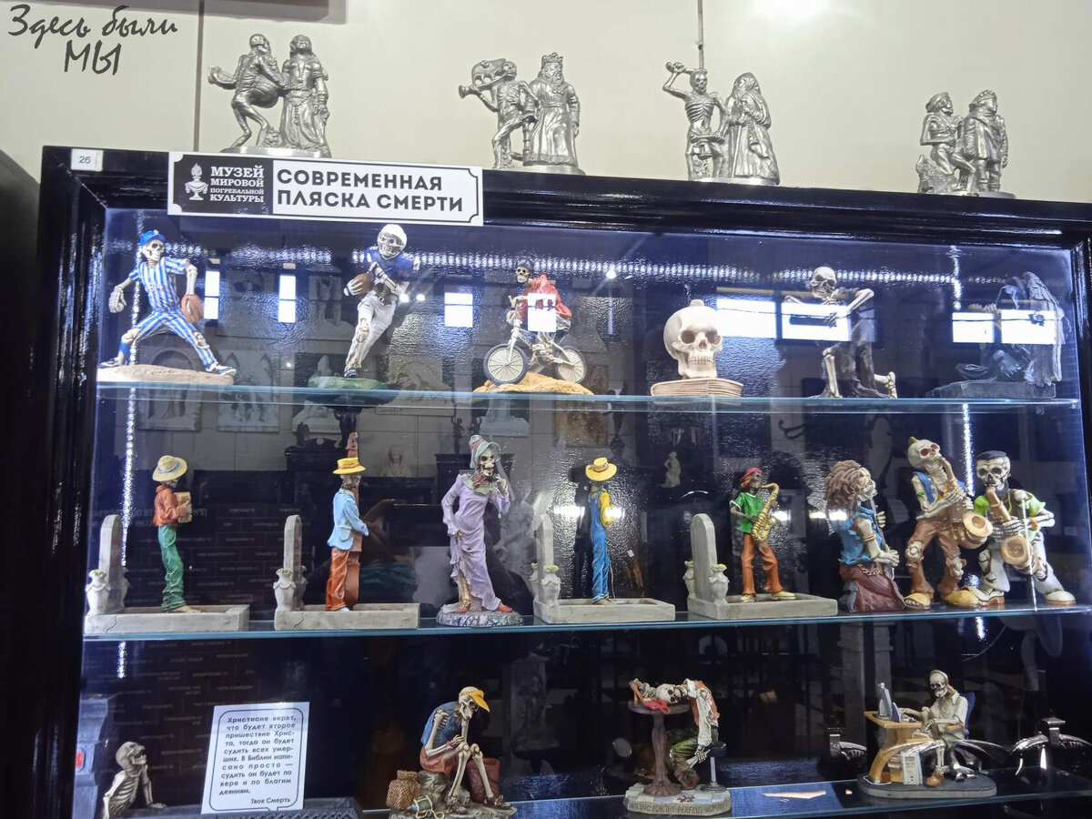 Пляска смерти — это не ирония и не стёб. А целый жанр. Особенно распространен был в Европе. Деятели искусства таких стран как Испания, Франция, Германия и прочих творили в этом жанре. Например, в живописи, если на полотне будет череп, это направление будет называться «Ванитас». Основан он был не на пустом месте. Чума. Это болезнь унесла жизни миллионов. Быстро, почти моментально, захватывая все новые и новые территории. Мы, живущие в эпоху Ковида их частично понимаем((. Итак, музей. Здесь представлено превеликое множество различных скелетов от мала до велика. Гротескных и устрашающе натуральных. А что мы знаем о скелете — символе смерти как таковом? Немного покопавшись на просторах интернета, выяснили следующее: Вы знали, например, что цвет костей на самом деле не белый, а коричневый, чтобы стать белой, кость надо обработать. Косточки наши довольно прочные, втрое превосходят обычный бетон. Прочность костей напрямую зависит от количества в них извести. Чем её содержание выше, тем кости