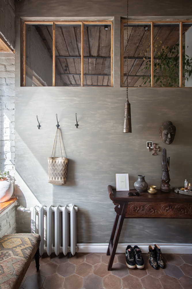 Преимущества стиля эко для прихожей очевидны. Только представьте, что дом встречает вас атмосферой комфорта и расслабленности. Это настоящий антидепрессант для городских жителей. Как оформить прихожую в эко стиле? Эти нюансы позволят создать гармоничный интерьер в эко стиле: Отделочные материалы Для создание атмосферы присутствия на природе используйте натуральные материалы или качественную имитацию. Отделка стен Тренд в отделке последних лет – тонкие деревянные рейки (баффели). Это популярное решение для оформления потолков, стен и мебели. Такая обстановка выглядит дорого, стильно и экологично. Входная дверь с фасадом, имитирующее покрытие рейкой, отлично гармонирует с перегородкой в прихожей. Отделка пола Лучше если вы отдалите предпочтение покрытию с холодной энергией свежести или теплого, домашнего уюта: Цветовая гамма Цветовая палитра прихожей в эко стиле состоит из оттенков природы: С их помощью можно создать тысячи гармоничных комбинаций. Таким образом вы создадите атм
