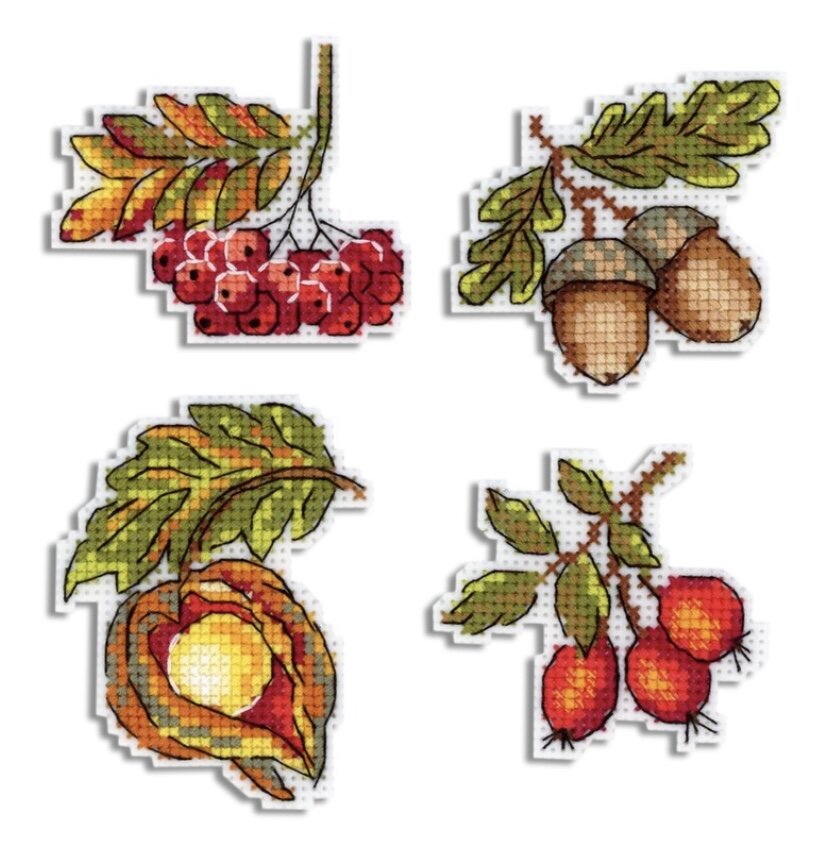 Шиповник, физалис, жёлуди и рябина. Очень симпатичные веточки. Как магнитики или брелочки будут неплохо смотреться. Да и вышиваться будут легко и быстро