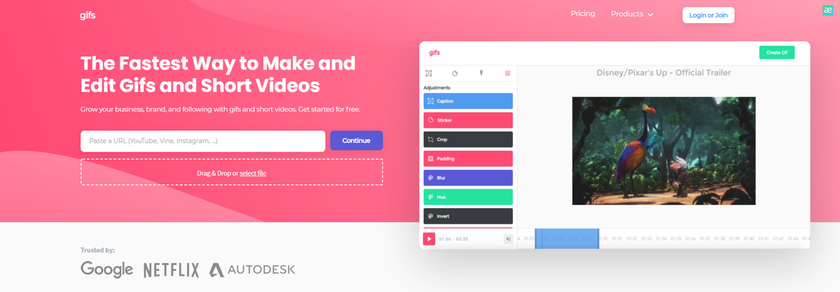 Можно использовать крутые видеоредакторы типа Premiere Pro или Movavi Video Editor, но они дорогие. Есть бесплатный вариант — онлайн-сервис GIFS. Он сделает качественную GIF из любого ролика и любой длины!
