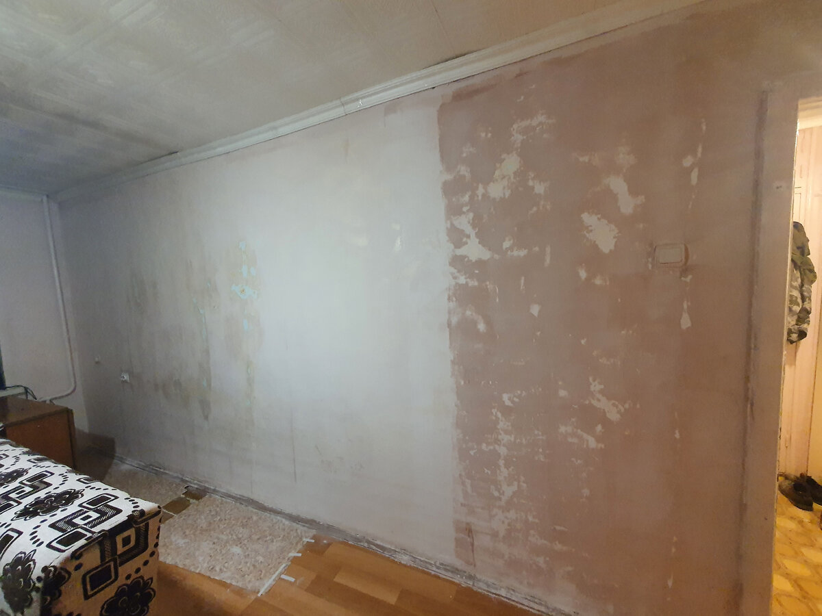 Я думал будет гораздо проще, но пришлось очищать поверхность стены от старой краски. Я начал было красить часть стены и на валик стала наматываться старая краска слоями... Ок. На следующий день я купил грунтовку. Промазал на следующий день туже часть стены, особого эффекта я не заметил. Пришлось докупить брусок для шлифовальной бумаги. Было бы здорово купить конечно приспособу для дрели и ей пройтись, но в ближайших магазинах не нашел такую. Пришлось пройтись ей по стене. Отскаблил там где отскабливалось и начал снова наносить слои краски. Я конечно без штукатурки... это еще больше работы... Конечно очень много пыли...по хорошему нужно купить пленку и застелить все поверхности. Но у меня ее не было. Постепенно вся пыть протрется, как то не переживаю... Вобщем краска легла идеально!!! Она даже не пахнет и быстро сохнет! На такую стену 5л маловато . Осталось пройти низ и кое где немножечко промазать и я думаю будет идеально! На весь ремонт ушло где то 2500тр. Краска , грунтовка, вали