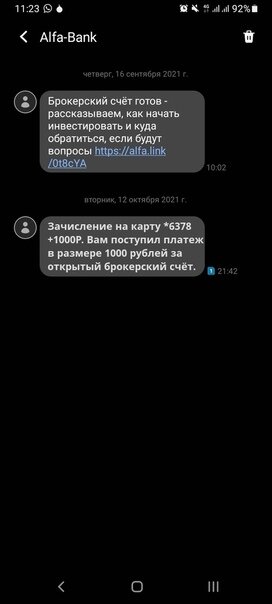 Хочу обрадовать владельцев карты Альфабанка!! Потому что те у кого есть карты от этого банка могут открыть бесплатный брокерский счёт и получить 1000р, на карту. Как же это сделать? А все просто: 1)Переходим на сайт vk.cc/...3ir 2)Нажимаем "Открыть брокерский счет" 3)Вводим нужные данные. 4) После того как получили смс о том что счёт успешно открыт. Забываем про него и ждем смс о зачисление средств. Всем спасибо. #Альфабанк #Халява #инвестиции