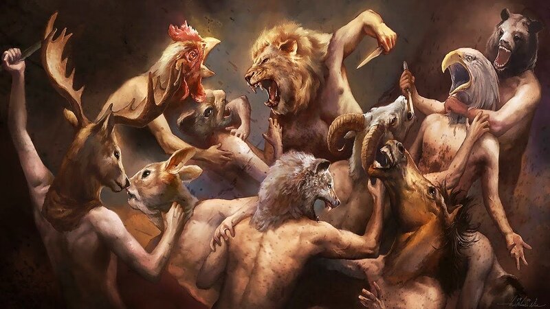 Люди. Большинство из них стали мелочными, продажными зверьми, готовыми убивать. Сейчас, деньги и богатство для людей значат все, сейчас, любовь продается в коробочке, крепкая дружба в мешочках, да и сами люди продаются за бумажки и монетки, хотя всё ещё мнят себя венцом творения. В их мире любое чуство можно купить, любое действие можно заказать наперед, выдав аванс. Да, есть те, что еще не продали себя, они единственные, кто живет еще по-человечески, их "звери" не любят, ведь как их купить, если они не продаются? Поэтому их эмоционально и не только давят, вытирают ноги и совсем не хотят ценить. Но их любовь нельзя купить, а можно только завоевать и далеко не богатством, их дружба лежит не в мешочках, что звонко звучат, она в душе, их доверие не найдешь на полках с драгоценными камнями, его можно добиться, но не кредитками, а делами.. Настоящими поступками идущим от сердца. Жалко, что таких людей сейчас мало. Хотя мир без взяток и купленных любви и дружбы стоит гораздо дороже, чем можн