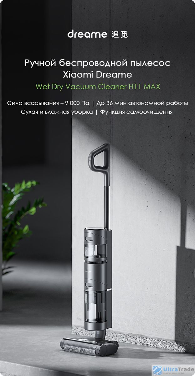 Беспроводной пылесос Xiaomi Dreame Wet Dry Vacuum Cleaner H11 MAX поможет облегчить процесс уборки и навести в доме идеальную чистоту. Данное устройство универсально, вы можете использовать его как для сухой уборки пола, так и для влажной. Пылесос работает от встроенного перезаряжаемого аккумулятора. Его емкость составляет 4000 мАч. В полностью заряженном состоянии устройство может обеспечить пользователю до 36 минут автономной работы. За это время можно справиться с любыми крупномасштабными задачами и убрать квартиру размером до 200 м2. Удобное использование Данная модель создана для экономии вашего времени и повышения комфорта жизни. Конструкция изделия продуманна до мелочей. Эргономичная форма ручки и гибкое управление позволяют не напрягаться во время уборки. Пылесос изготовлен из облегченных и одновременно прочных материалов. Вес изделия всего 4,7 кг. Подобный подход, обеспечивает легкость в использовании одной рукой и отсутствие давления на позвоночник. Два резервуара для воды Ос