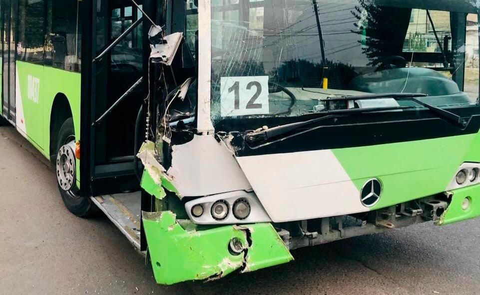 Водитель автобуса Mercedes-Benz снес светофор и врезался в дом в Ташкенте