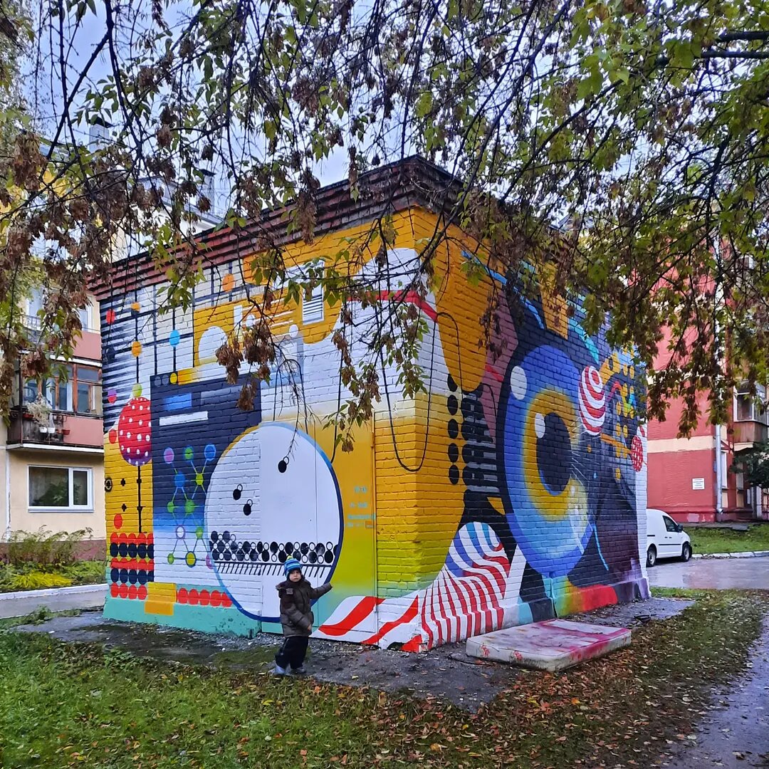Ещё один интересный рисунок на той же улице Терешковой, но уже на трансформаторной будке в одном из жилых дворов. Появился он этим летом, в рамках фестиваля научного стрит-арта "Графит науки 2021". Увы, не обошлось без неприятностей. А всё потому, что какому-то жителю Советского района спокойно не сиделось. То ли от скуки, то ли от зависти, им было написано заявление в департамент культуры города, что мол художества то не согласованы с худсоветом. В связи с этим, департаментом культуры была инициирована процедура демонтажа "монументально - декоративного оформления" фестиваля. Сразу 4 мурала попали под удаление. В том числе и эта работа. Организаторы фестиваля обратились за помощью к неравнодушным жителям города. И разум победил. Работы сохранили и теперь, прогуливаясь по Академу, можно посмотреть на них. Долой серые подстанции! Ул. Терешковой, 34 Другие интересные граффити в Академгородке можно посмотреть тут и здесь #новосибирская область #новосибирск #граффити #граффити рос