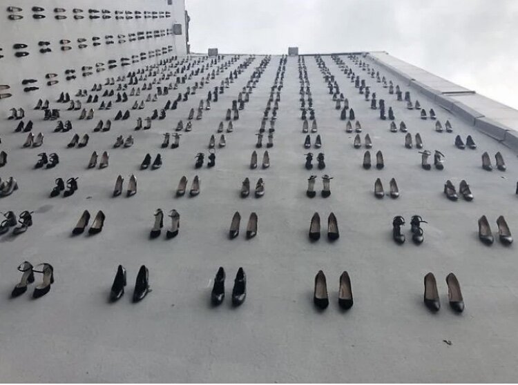 Автора этой инсталляции, появившейся в центре Стамбула, зовут Вахит Туна. Художник говорит, что вдохновением для его работы послужила новость об увеличении числа жертв домашнего насилия в Турции. Вахит сожалеет, что подобные новости исчезают так же быстро, как появляются, они не остаются в информационном поле надолго. Он решил изменить ситуацию и создал арт-объект. Вахит подчеркивает, что выбрал высокий каблук не в качестве призыва отдавать предпочтение подобной обуви, а исключительно из эстетических соображений. Это обыкновенные туфли, они не принадлежат женщинам, пострадавшим от рук своих мужей. В некоторых регионах Турции существует традиция выставлять обувь погибшего родственника за порог в знак скорби.