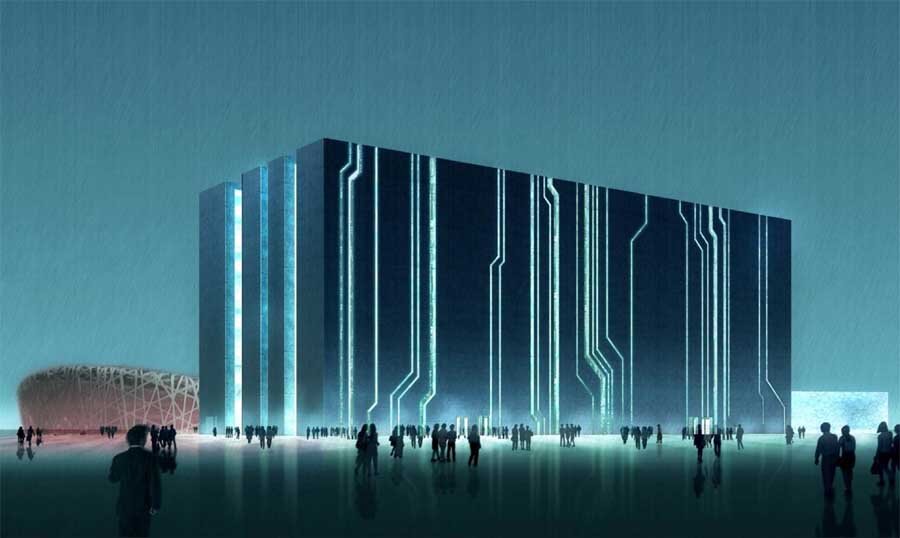 Начнем с внешне необычного китайского дата-центра в Пекине. 11-этажное кубическое здание площадью в 100.000 кв.м чем-то напоминает смесь штрихкода и визуализации программного кода из фильмов «Матрица». Изначально использовался в качестве координационного центра для Олимпийских игр в Пекине в 2008 году, но потом переквалифицировался в ЦОД. В нем также находится музей технологий.