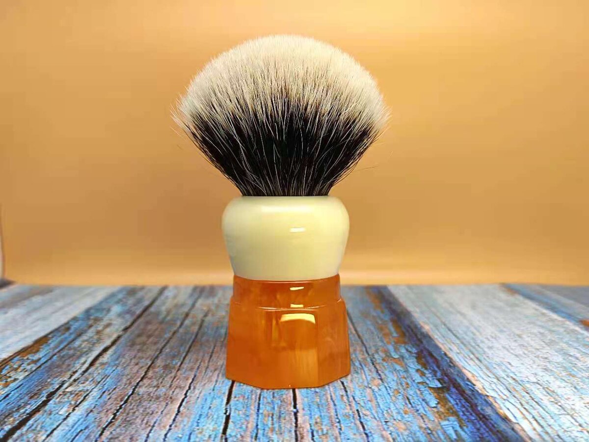 Этого малыша я взял еще летом на алиэкспресс, просто он очень мне понравился визуально, да и подвернулся хороший купон, лежал он у меня без дела наверное пару месяцев и вот наконец-то я его опробовал, жаль, что не сделал этого раньше )) Итак, помазок небольшой, реально малыш, узел 22мм из барсука, two band, на выходе около 24мм, лофт примерно 45мм, клеевая шишка есть, но совсем небольшая, менее 5мм. Поставляется в красивом картонном тубусе, в комплекте также фирменная салфетка: Все сделано довольно качественно, как сам узел, так и ручка. Нижняя часть ручки изготовлена под янтарь, верхняя часть под слоновую кость, смотрится красиво, изготовлено четко и без каких-либо следов клея, как это имеется у немцев. После неудачного опыта с помазком от Shavemac решил более детально изучить и этот узел. Набивка довольно плотная, не как раньше делали Yaqi, прямо ощутимо, на ощупь очень приятный и уже не как сухая солома, как было опять же раньше у них, что уже радует, хотя химией думаю все же обрабо