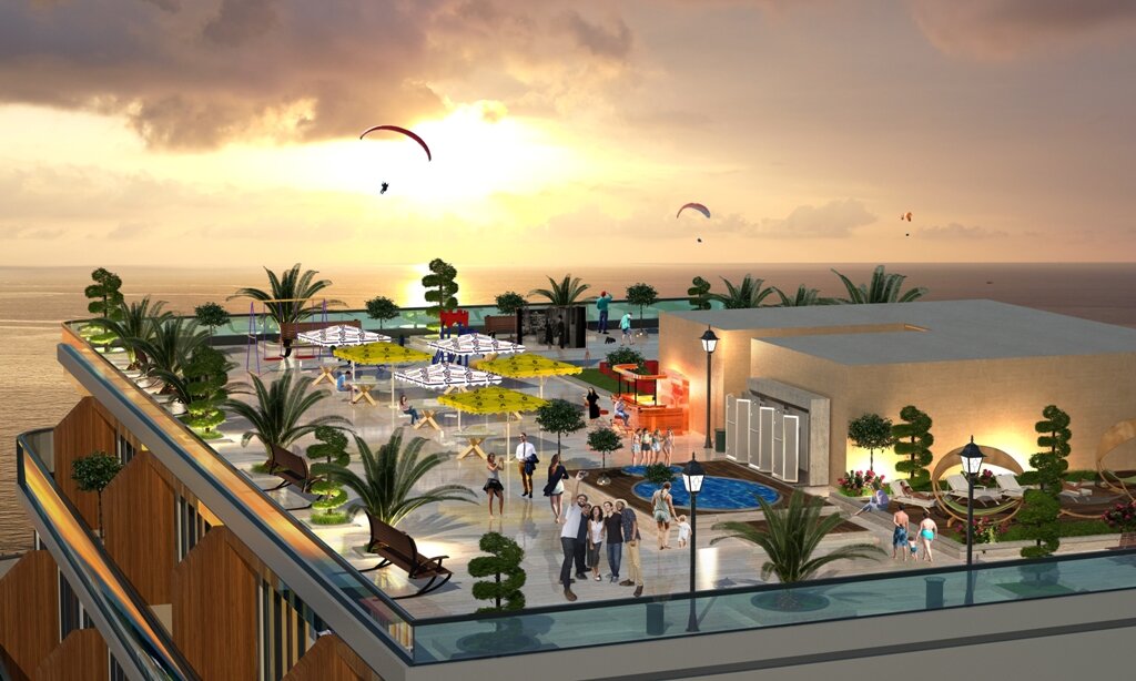 • На крыше – благоустроенная терраса с открытым бассейном, кафе-баром и летним кинотеатром